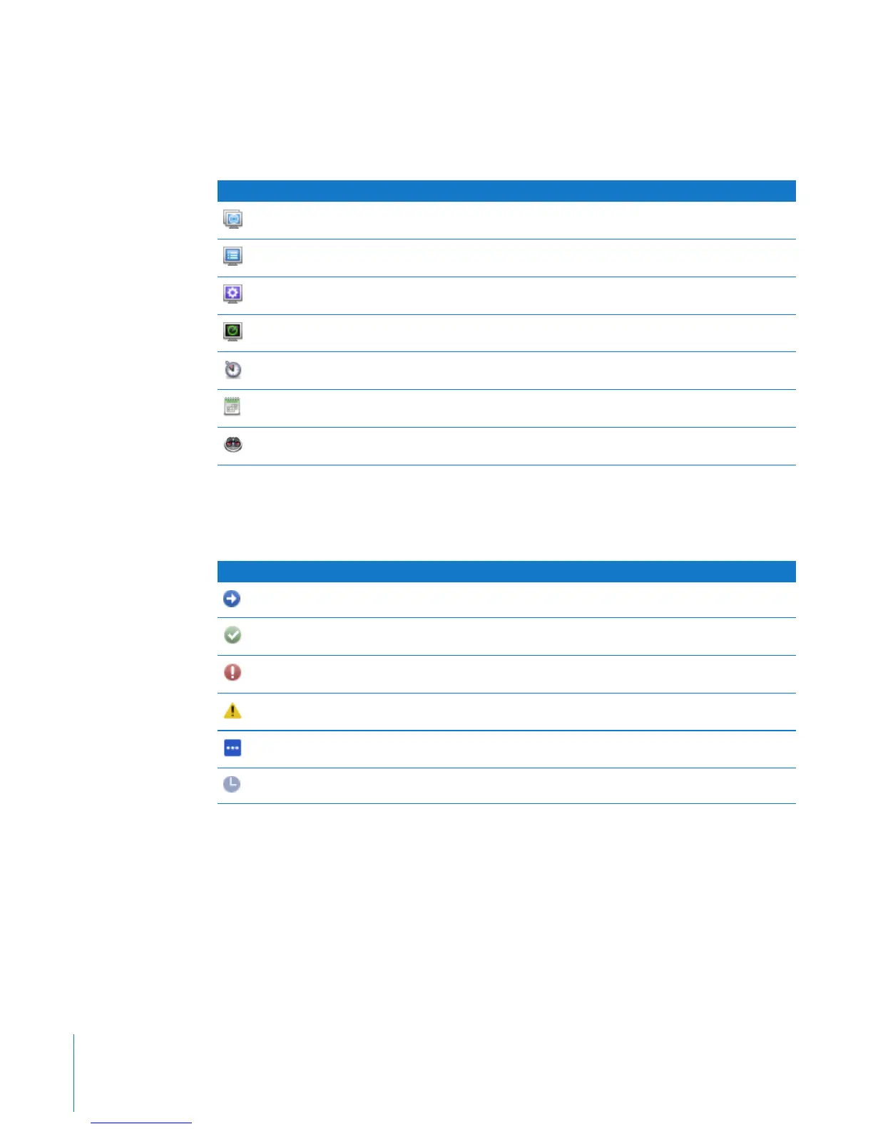 The following icons are used in the Apple Remote Desktop list area of Remote