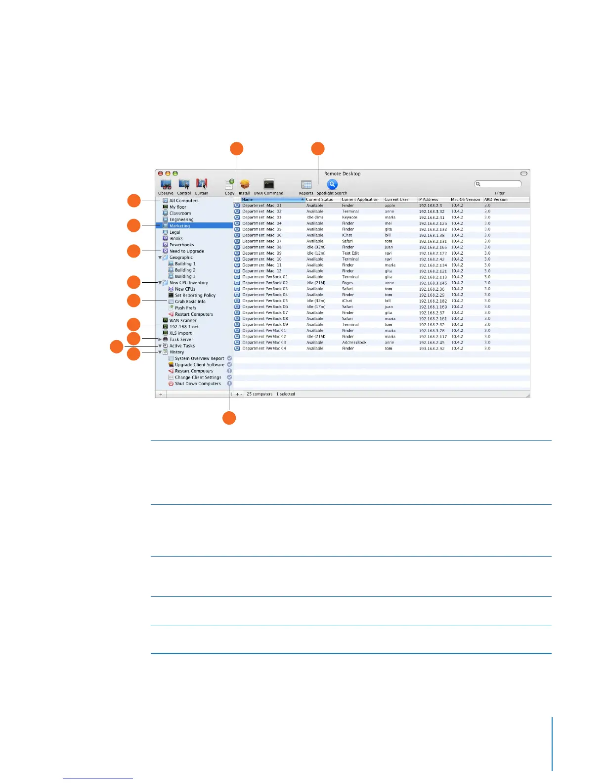 B Apple Remote Desktop computer lists: A list of computers you create to group computers in