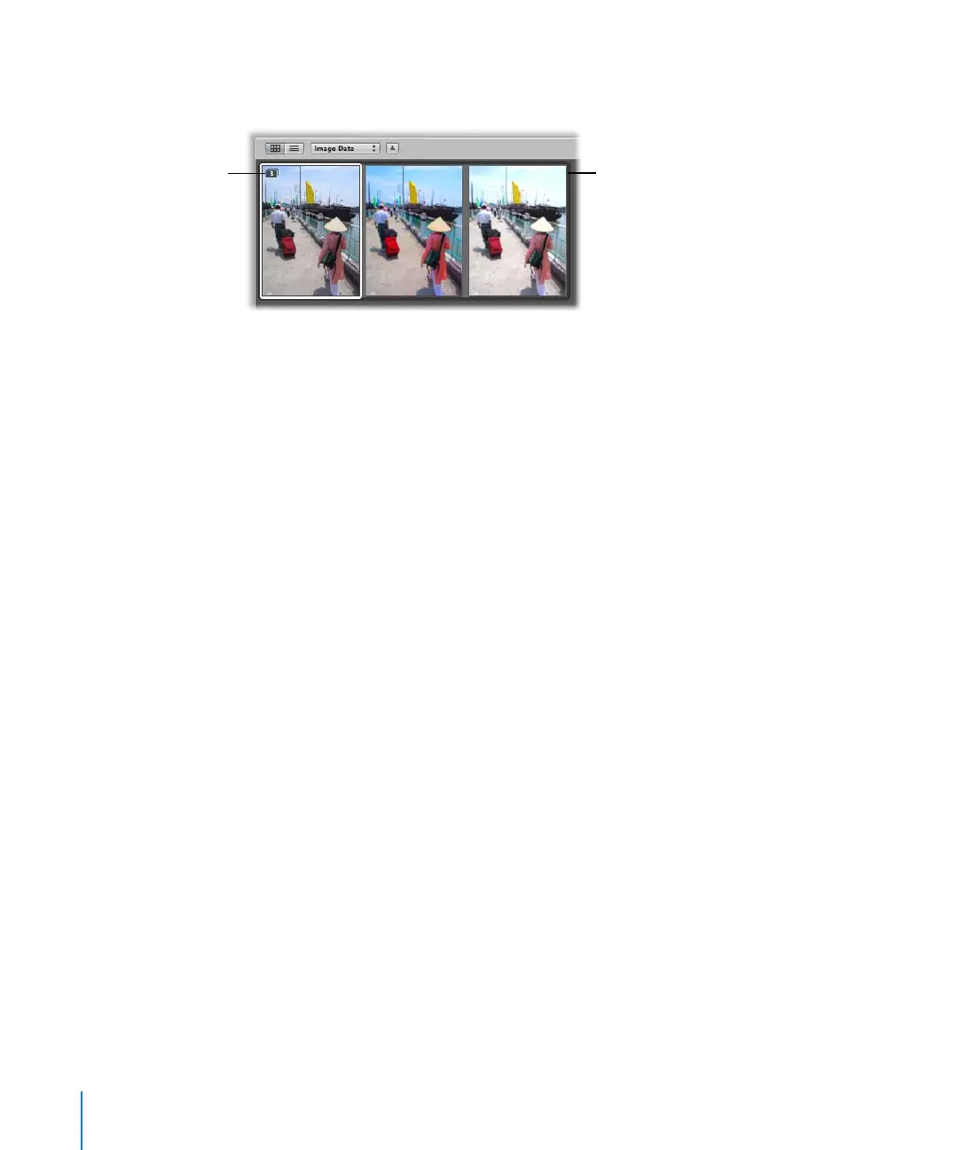 When a stack is open, you can select any of its image versions to display that version in