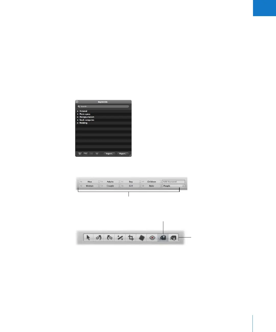 images as IPTC data. During export, Aperture embeds your keywords individually in the