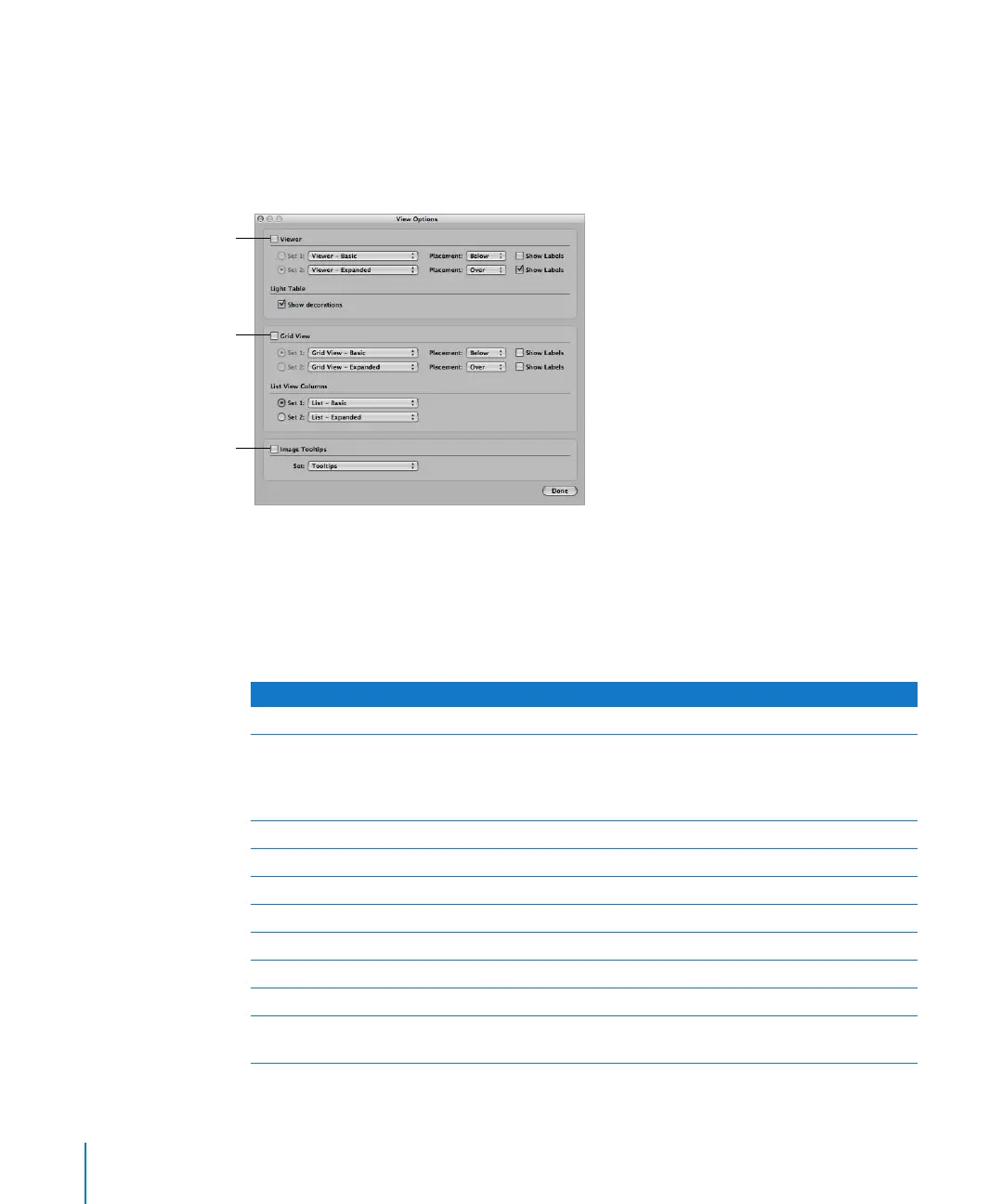 the Browser in grid view or list view, or in image tooltips. The following table lists the