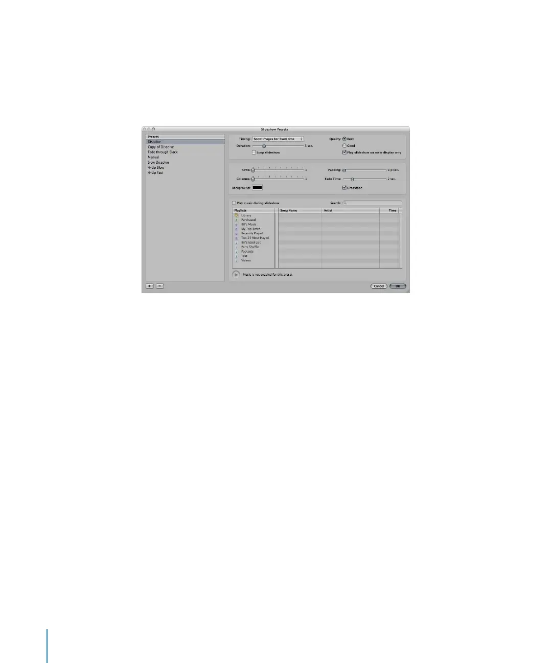 m Choose Aperture > Presets > Slideshow.
