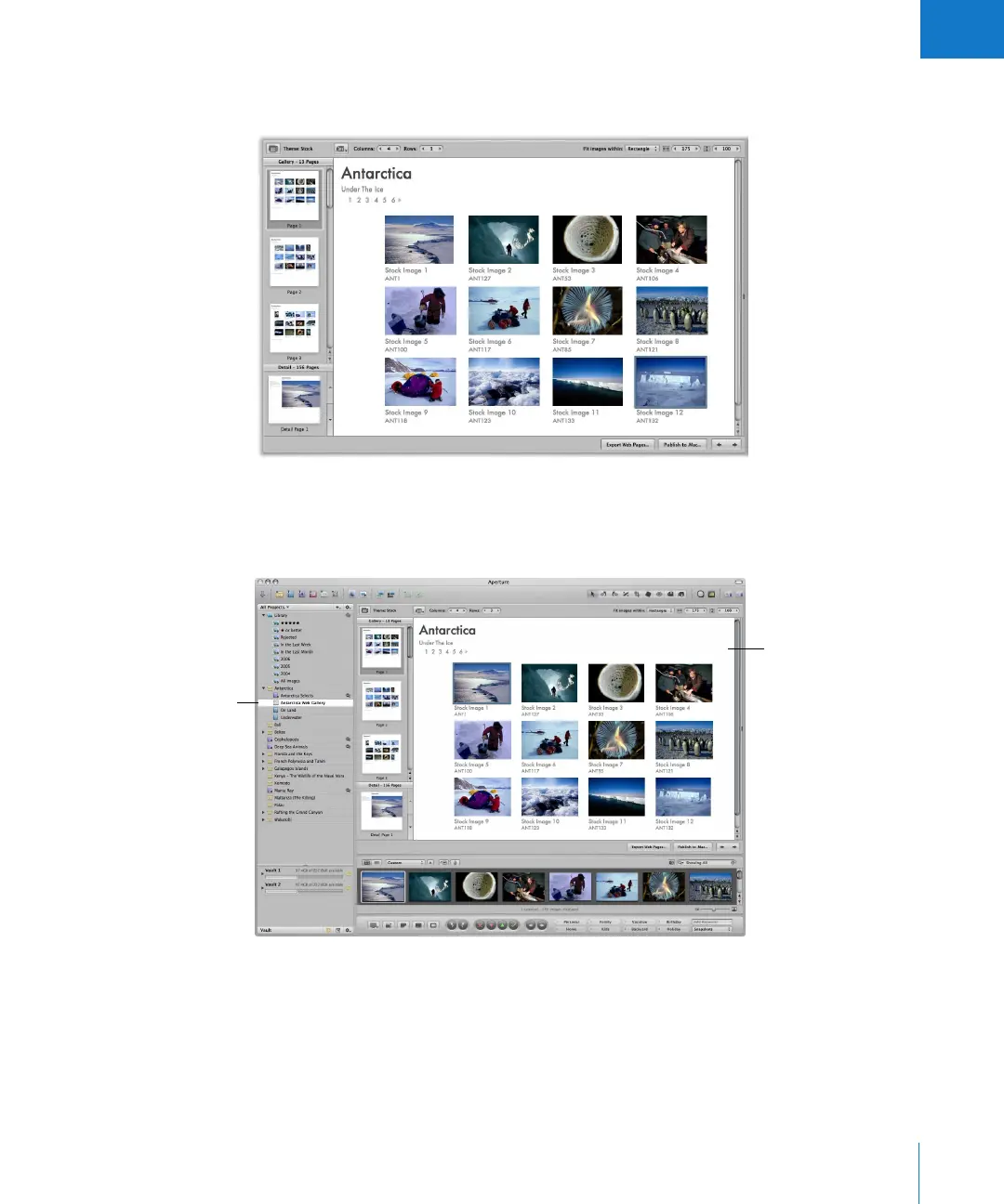 Aperture provides ready-made themes and webpage layouts that you can quickly