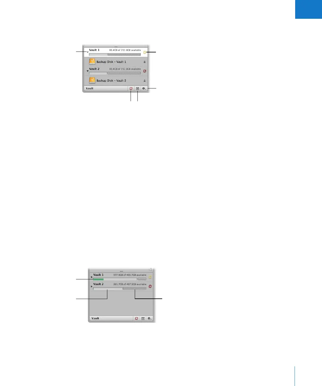 Vault Action pop-up menu: You can use this pop-up menu to add and remove vaults,