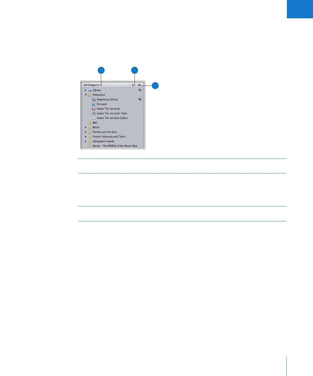 To learn more about using the Projects panel, see Chapter 3, “Working with Aperture