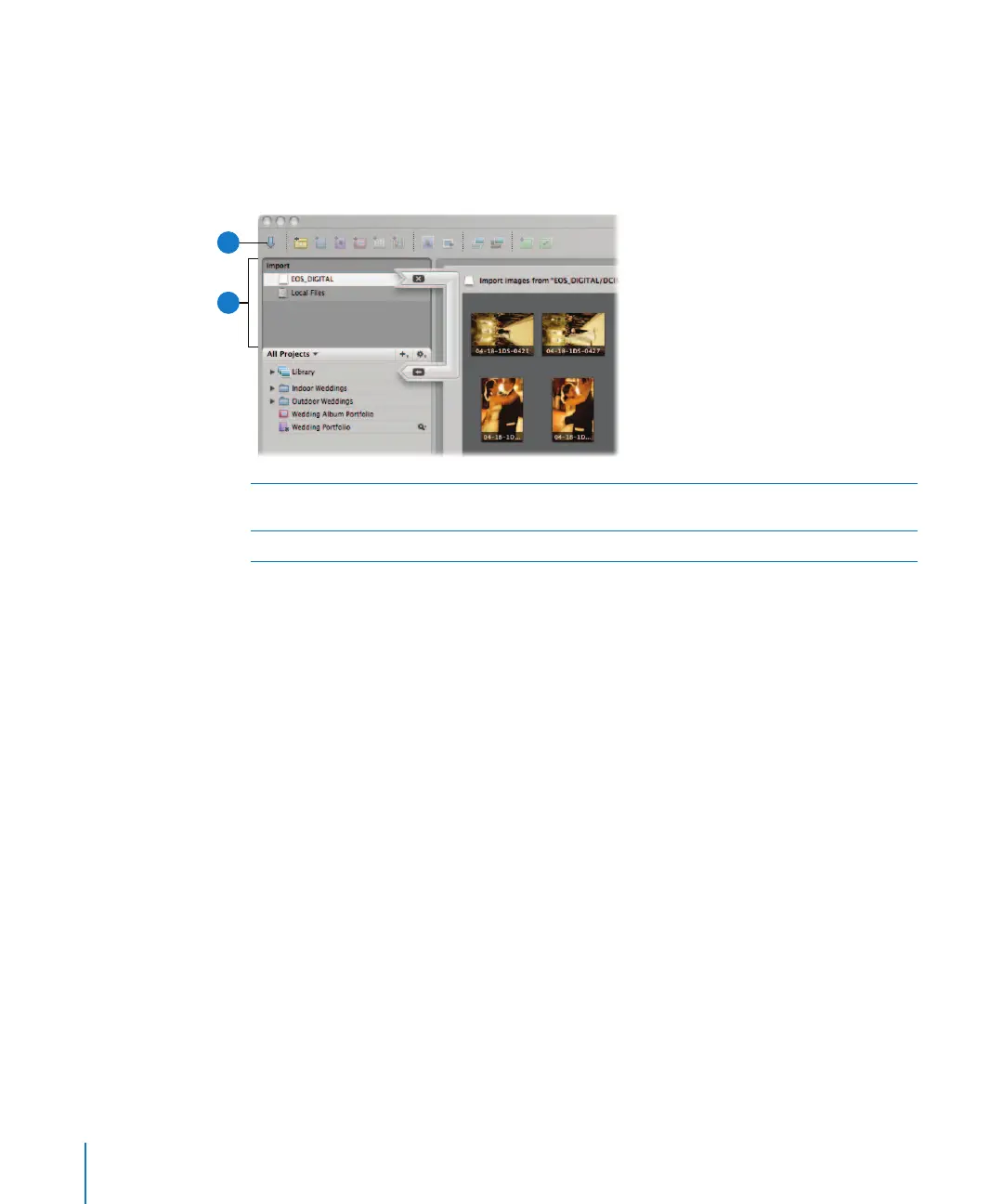 Aperture, you select a device in the panel or connect a camera or card reader, and the