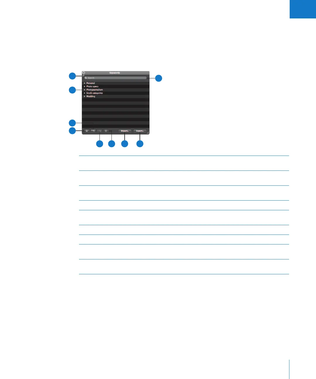 The Keywords HUD contains a library of keywords, allowing you to efficiently organize