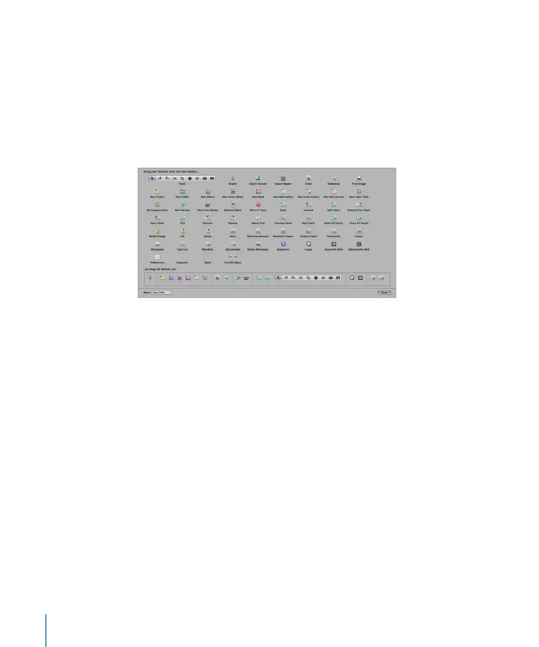 To add tools to the toolbar: Drag their icons from the dialog to the location where you