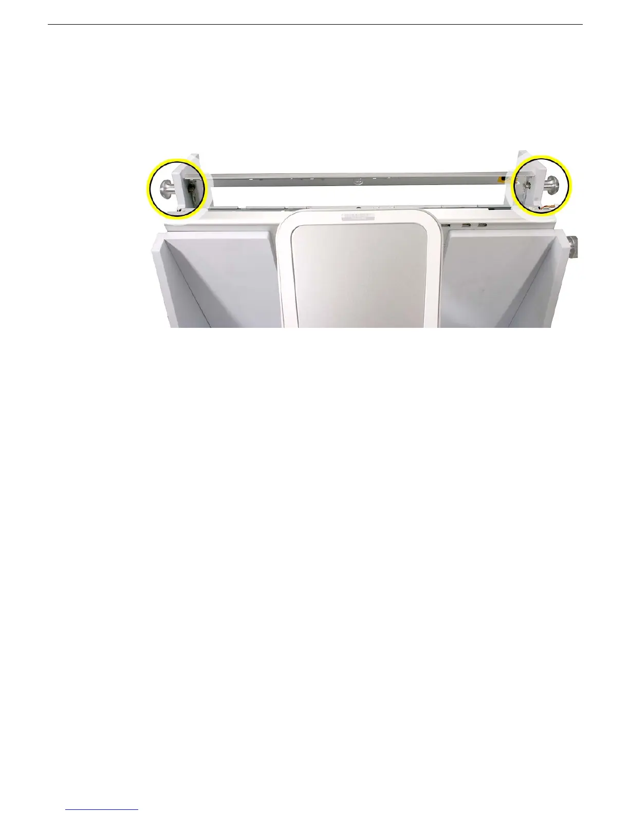 9. With the display assembly secure in the fixture, make sure the locking pins on both