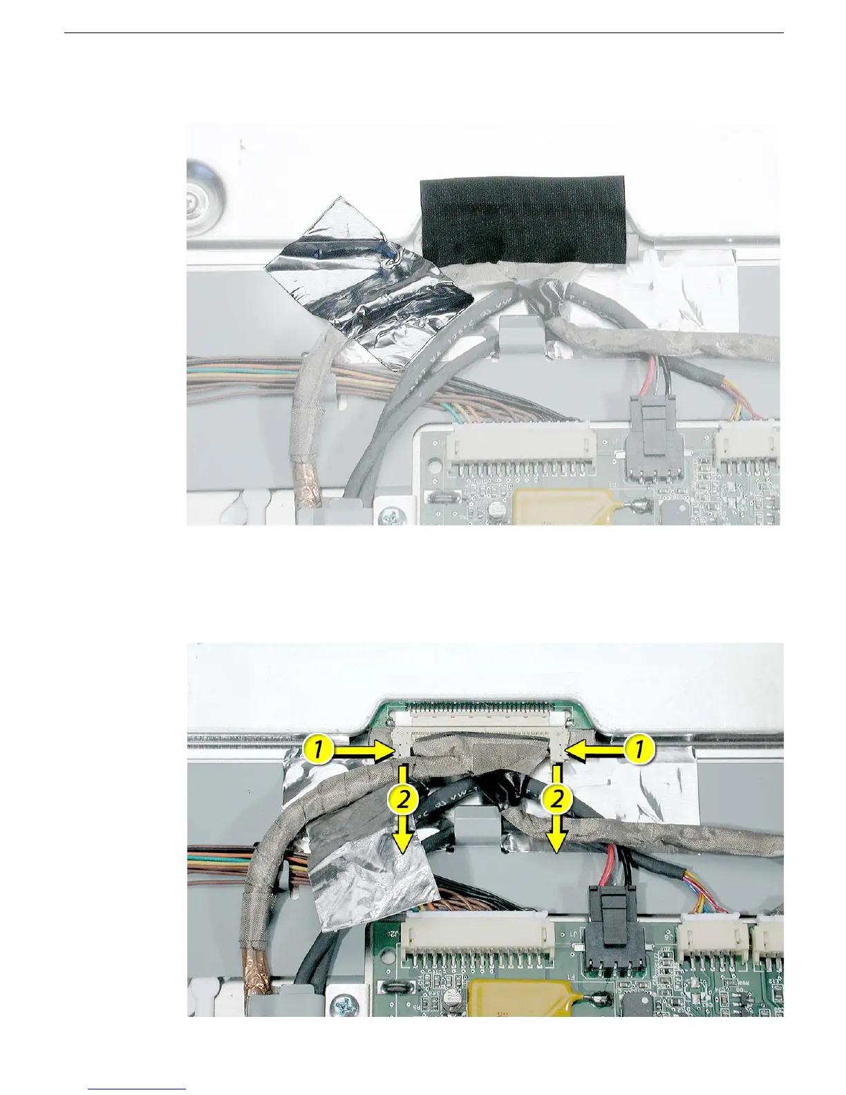 2. Peel up the smaller strips of tape that cover the TMDS connector and cable.