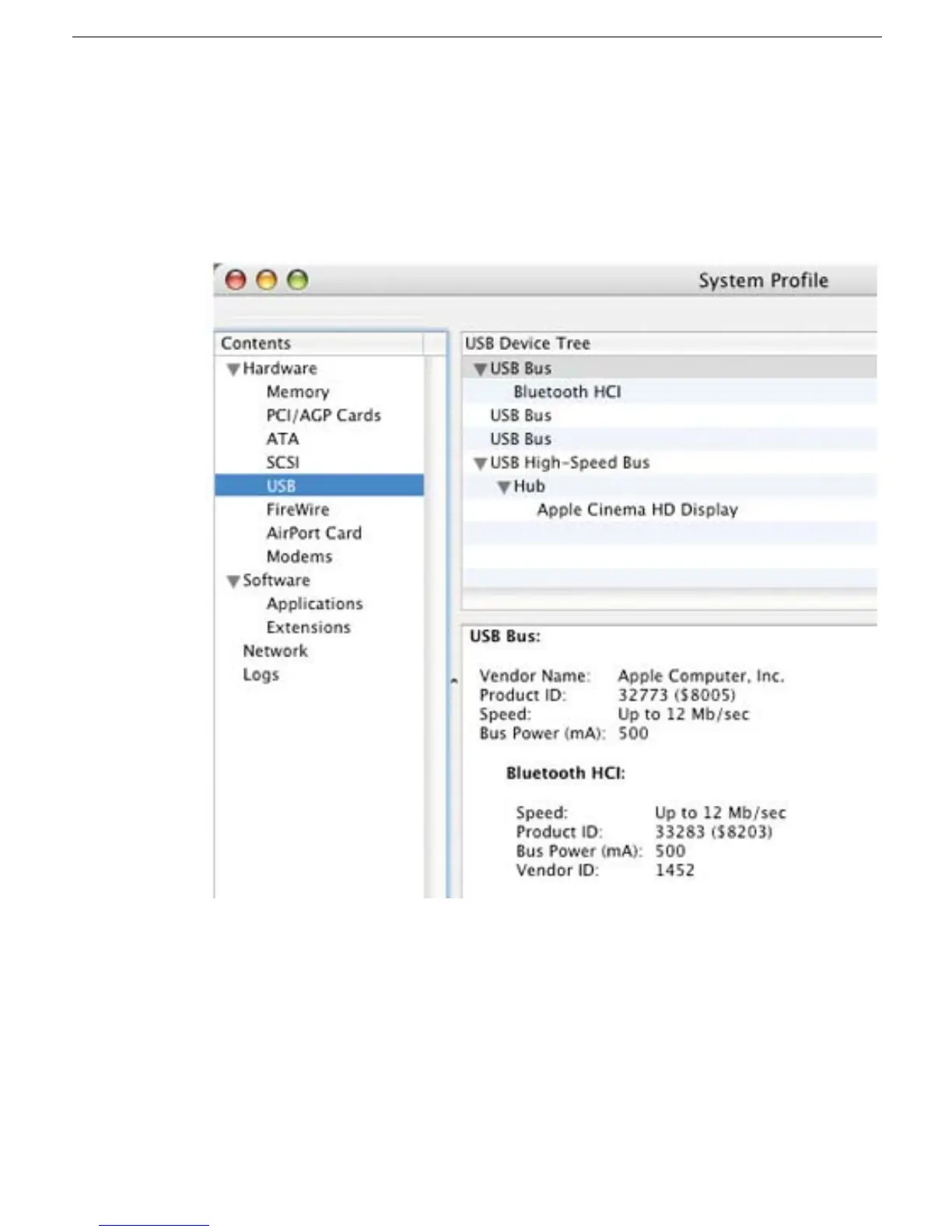 5. If the System Profile window shows nothing under USB High-Speed Bus Hub, check