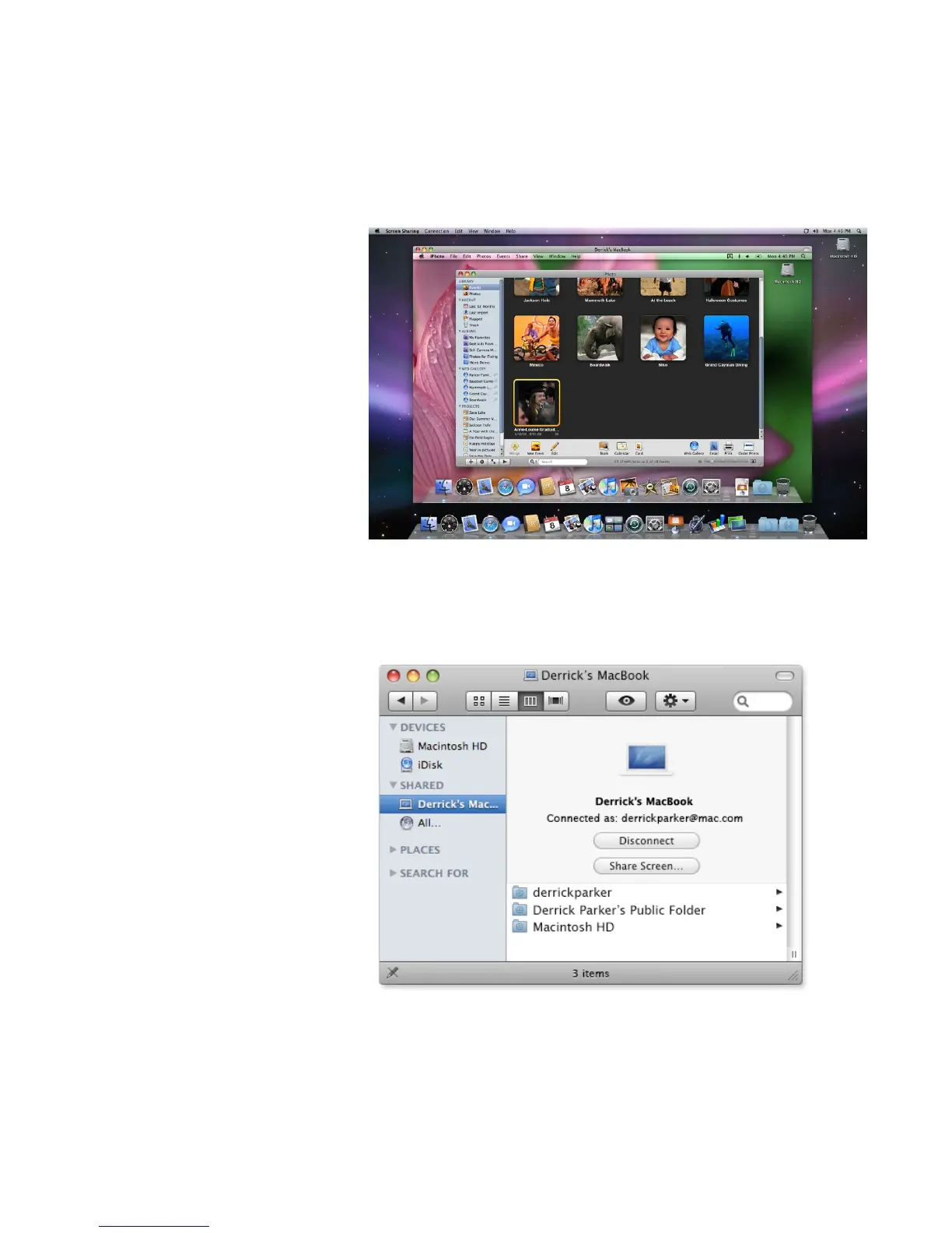With the Screen Sharing feature, you control your remote Mac through a special win-