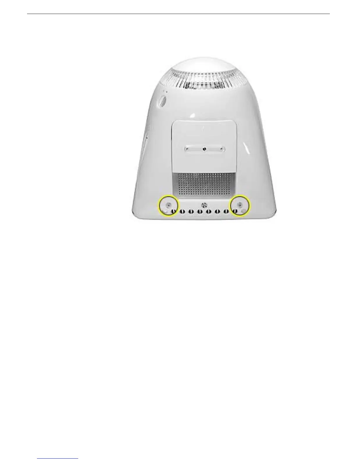 1. Remove the two foot screws. Set the plastic feet aside.