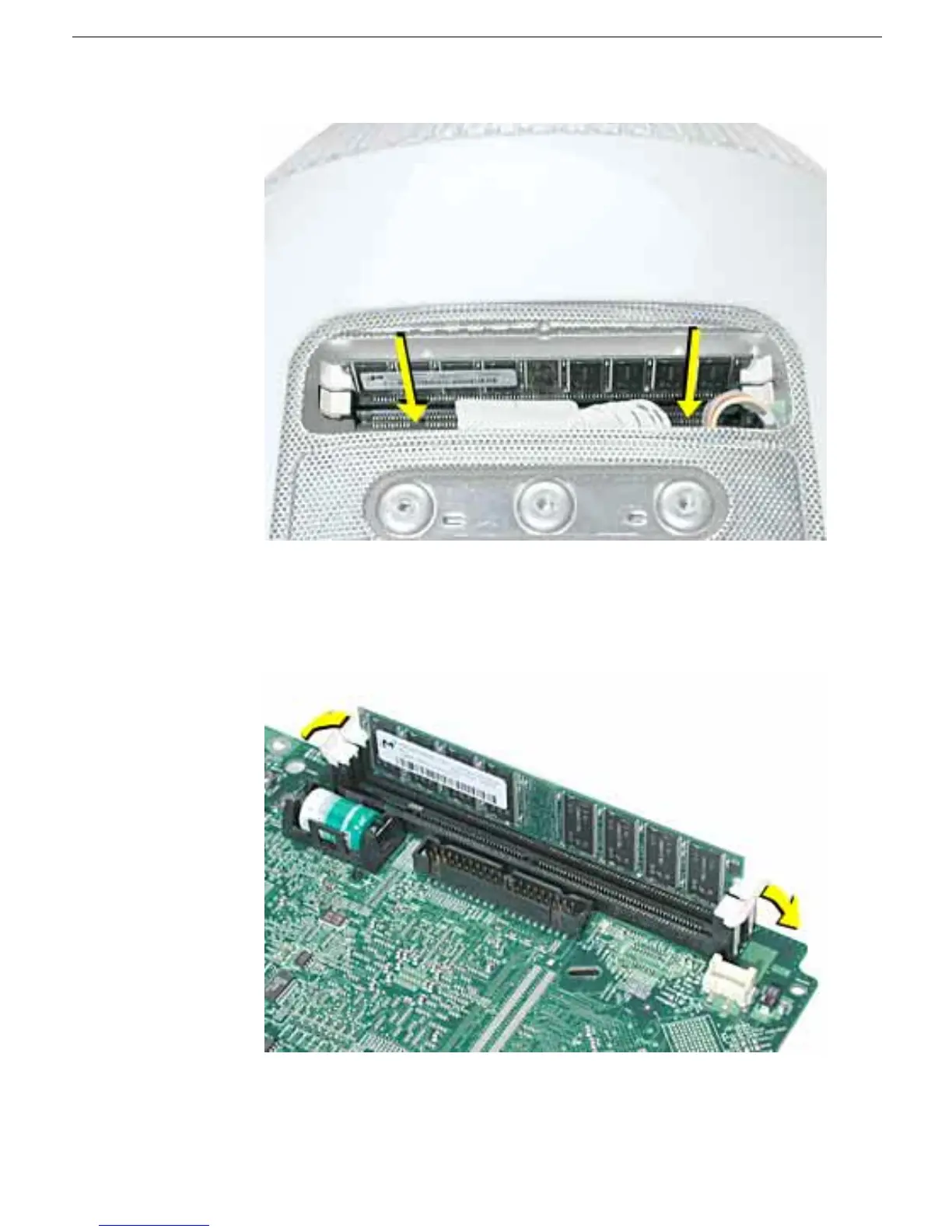10. Push down on the memory until it snaps into place. The ejectors will automatically