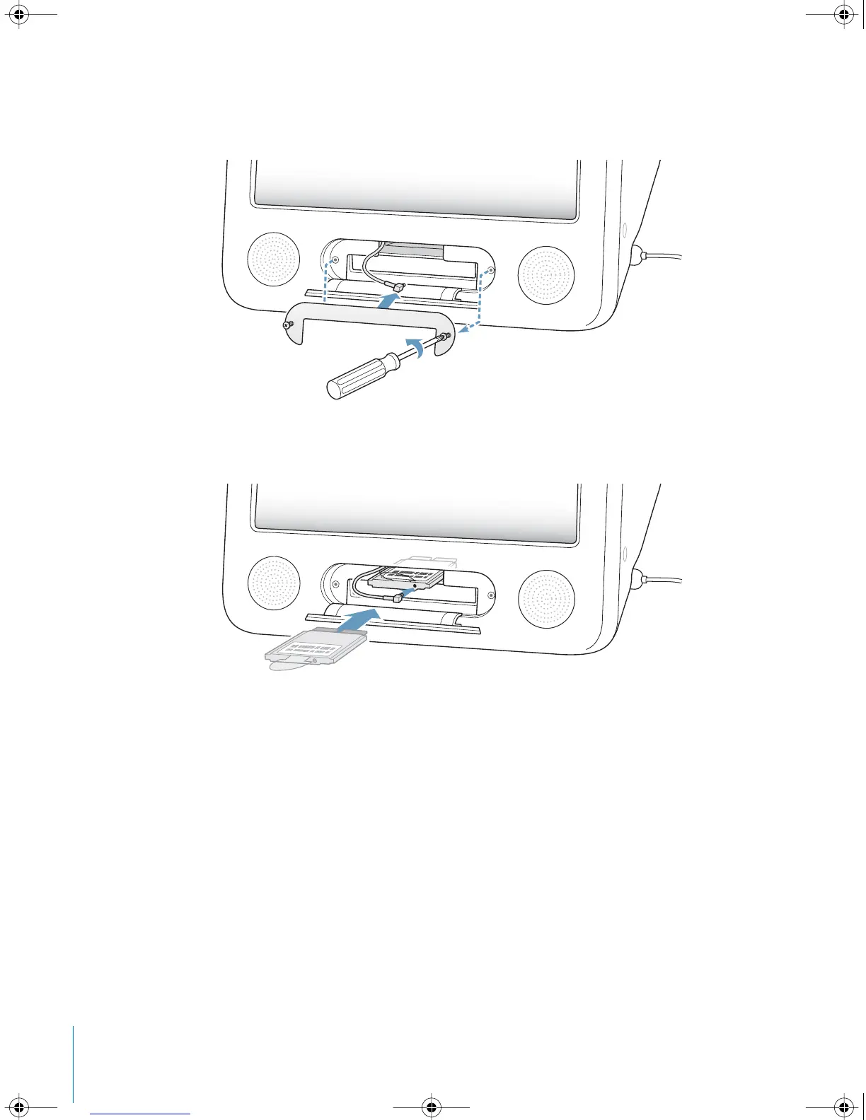 3 Loosen the captive screws on the AirPort access panel using a Phillips screwdriver. Then