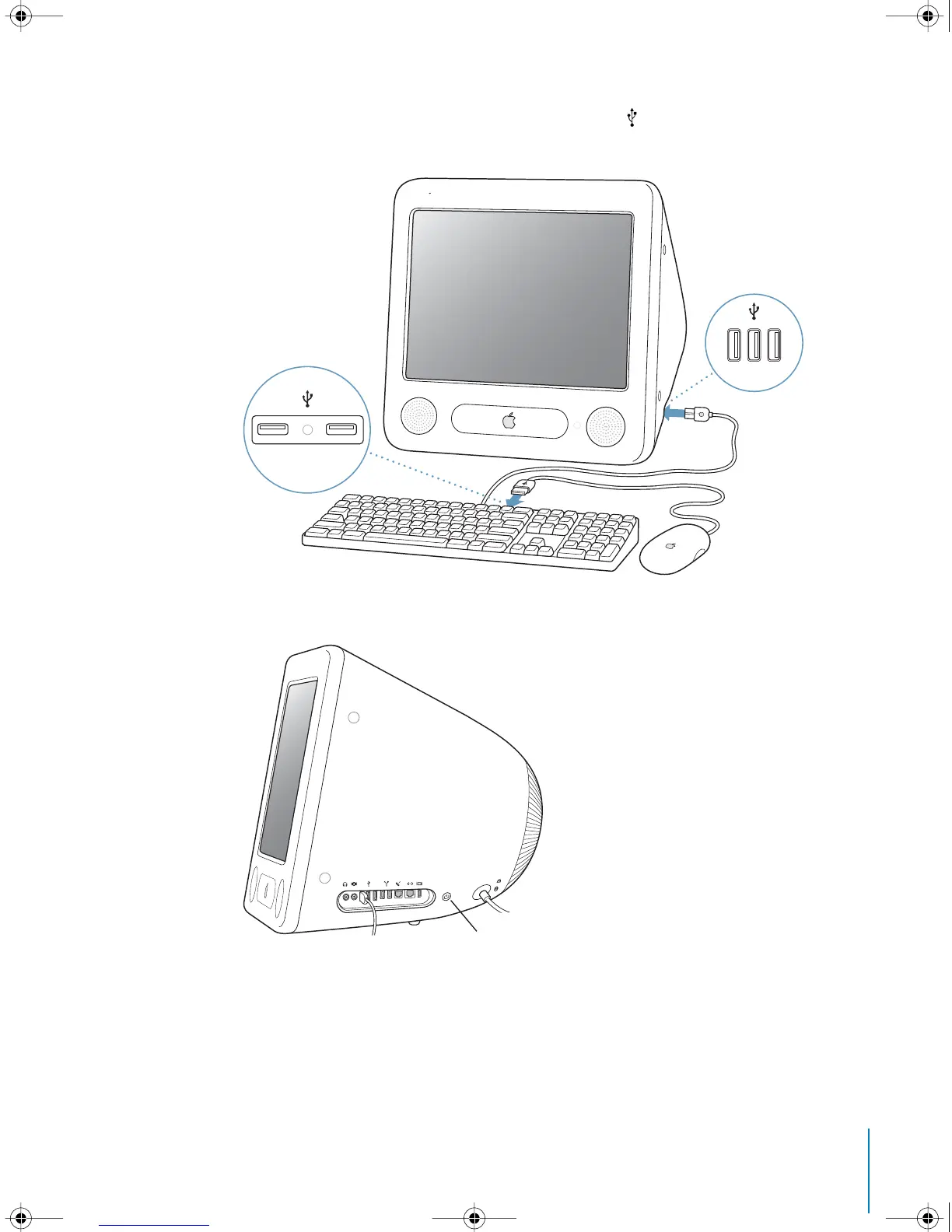 Connect the keyboard cable to one of the USB ports ( ) on the computer. Plug the