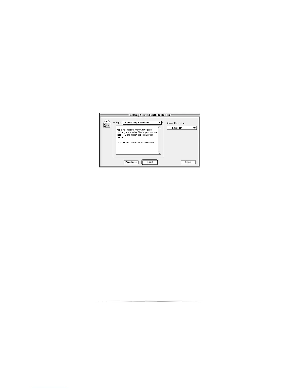 “Choosing a Modem” from the Topics pop-up menu.