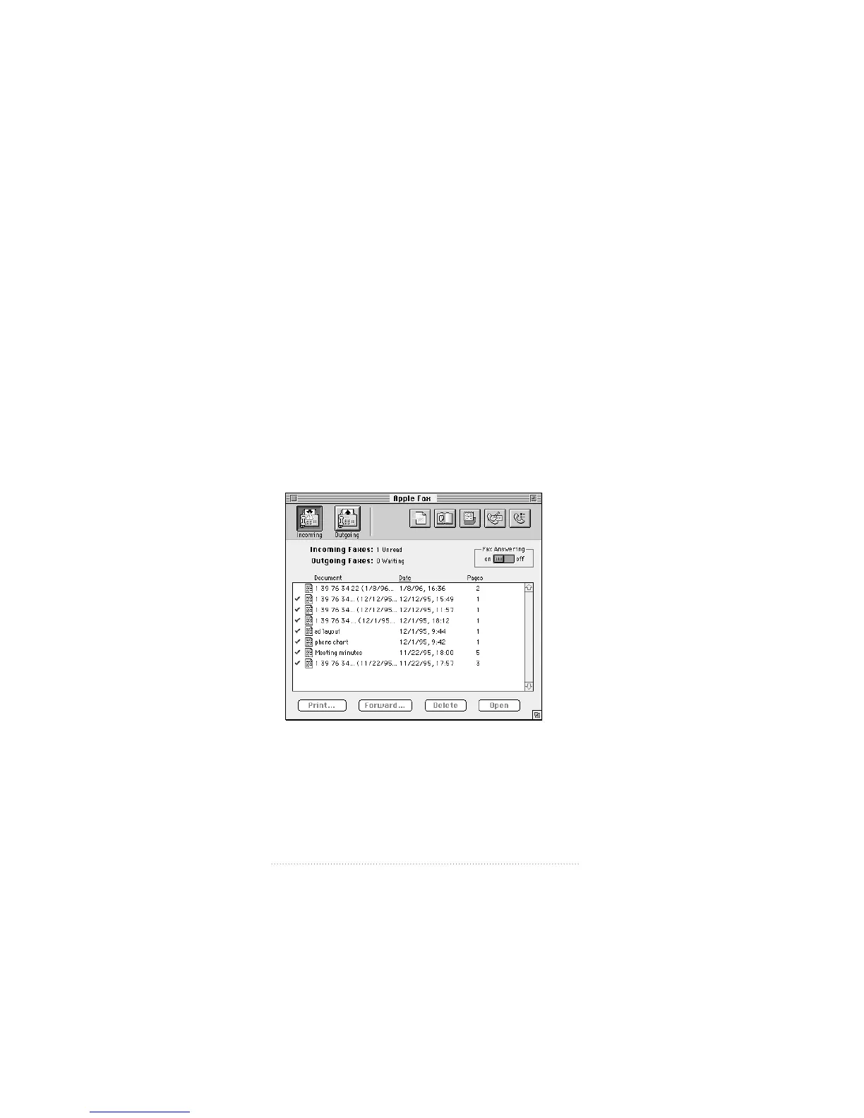 order, oldest first, if you wish. Apple Fax shows you the