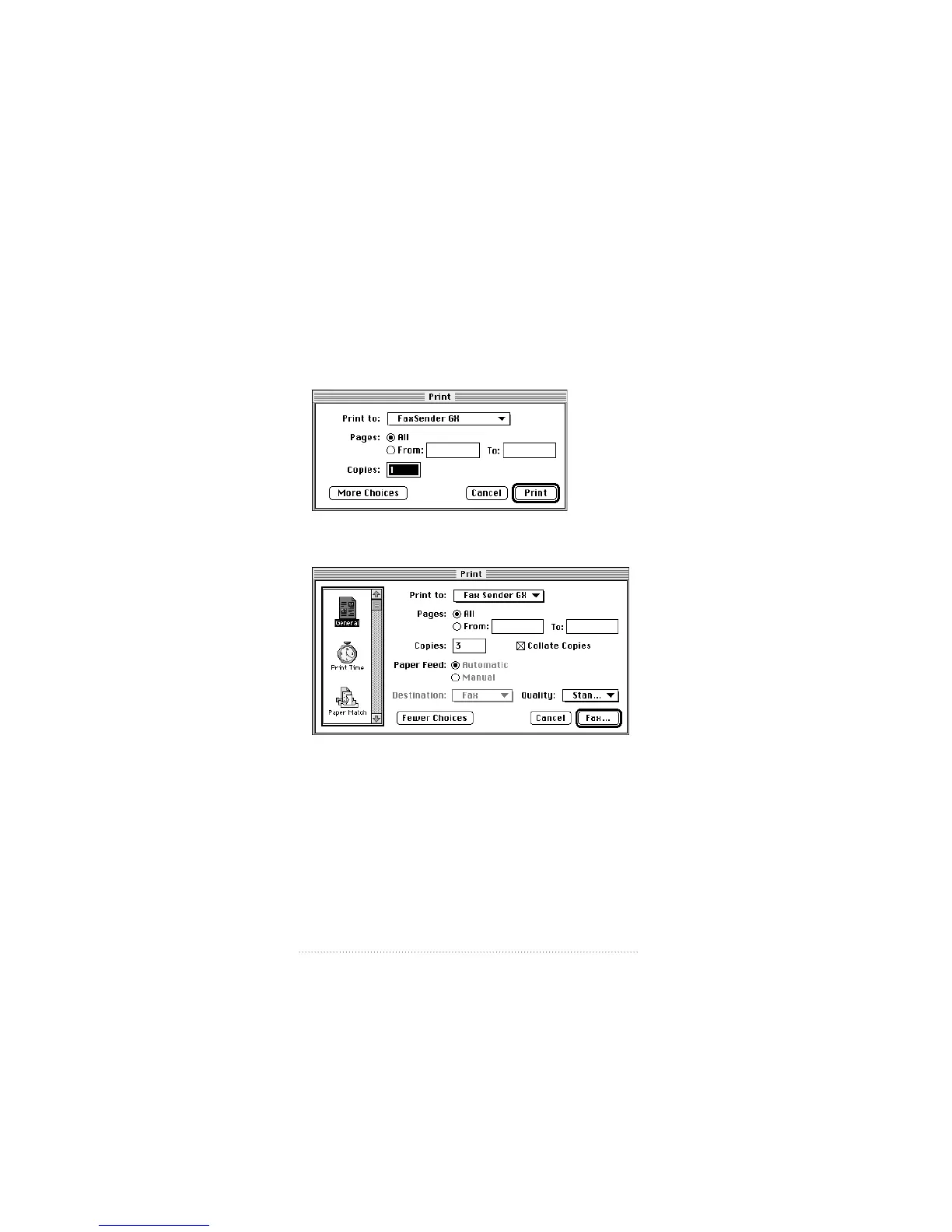 4 Be sure that Fax Sender GX is selected in the “Print to” pop-
