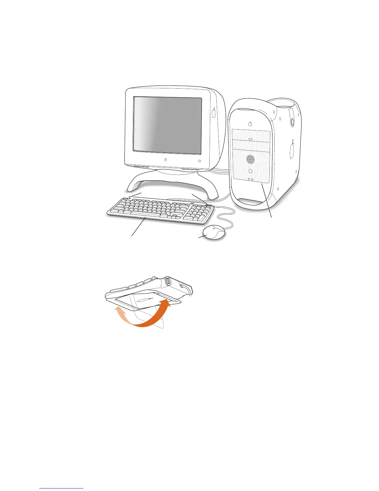 1 Plug one end of the keyboard cable into one of the ADB (V) ports on the keyboard.