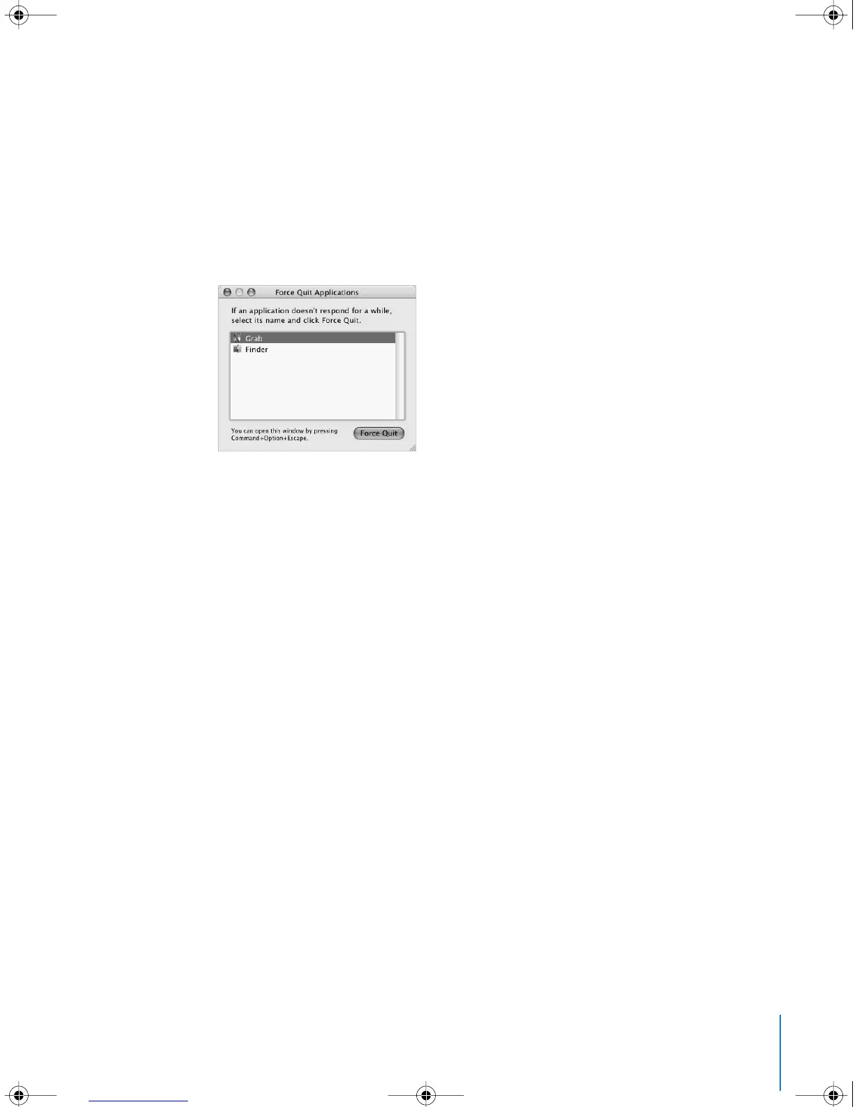 1 Press Command (x)-Option-Esc or choose Force Quit from the Apple (K) menu.