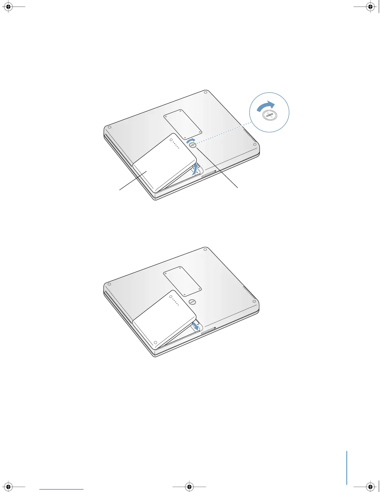 • Shut down your PowerBook. Turn it over and locate the battery latch. Use a coin to