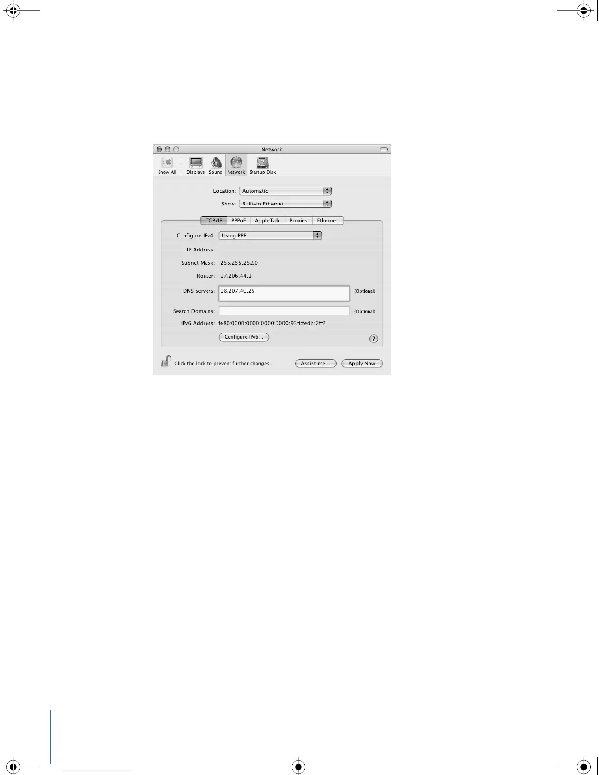 4 Click TCP/IP and choose either Using PPP or Manually from the Configure IPv4 pop-up