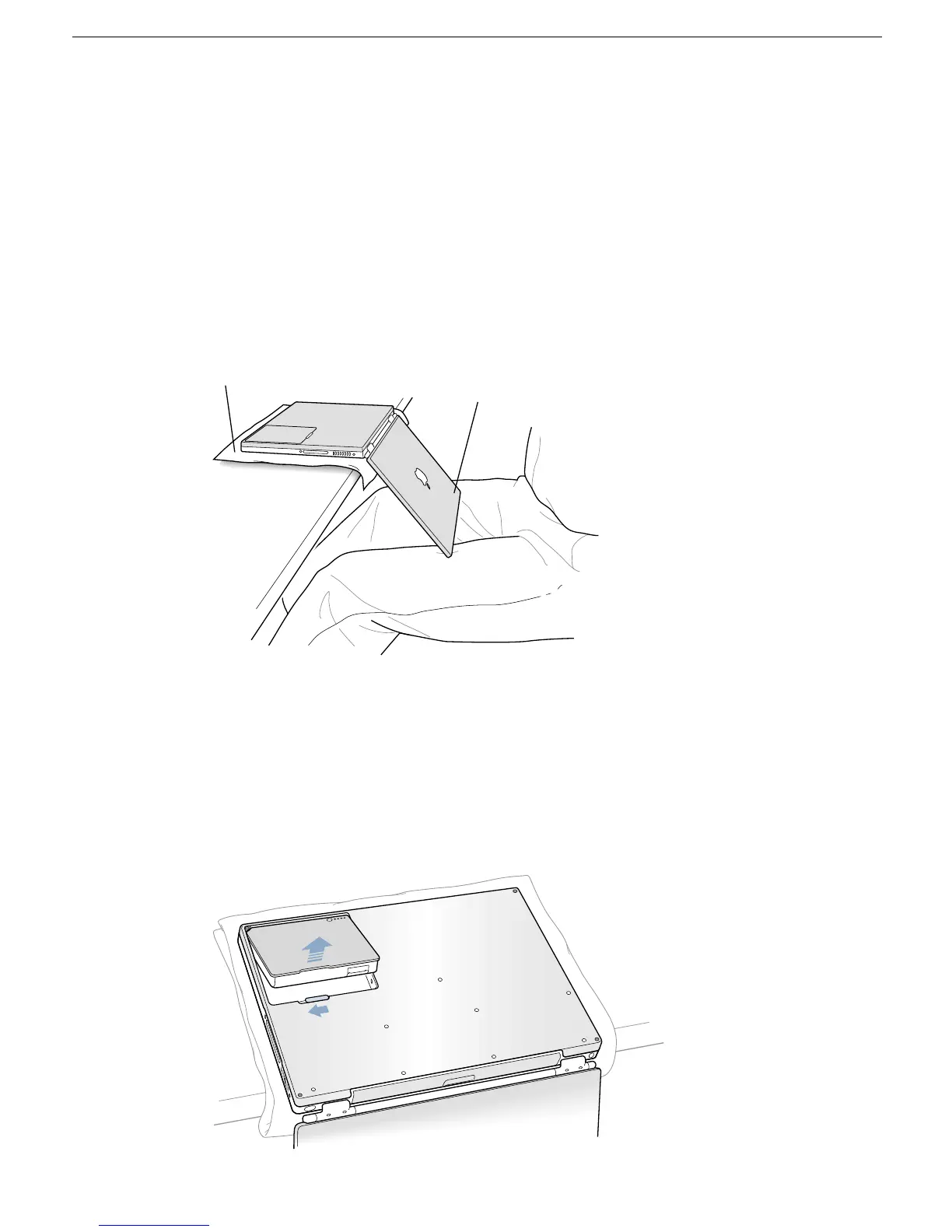 PowerBook over and lay it flat, fully on the table. Make sure the display hangs over the