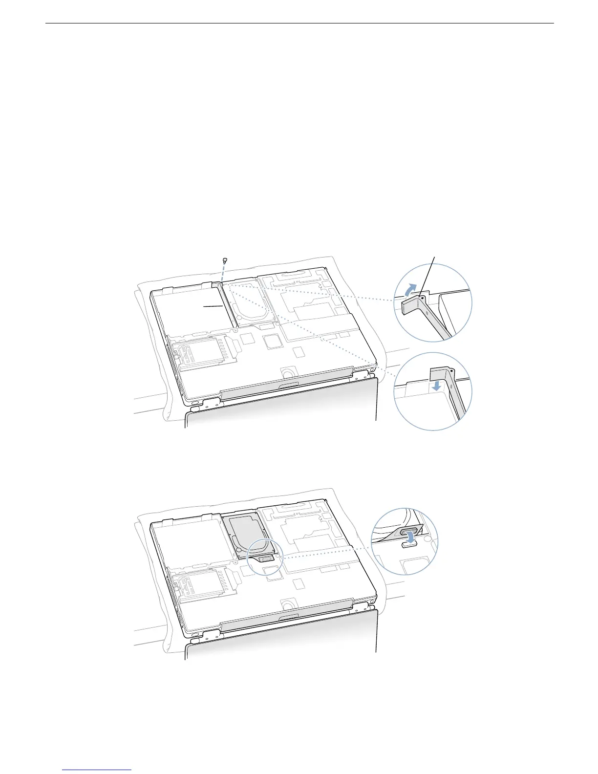 original position. Line up the rubber stoppers on the hard drive until they fully seat into