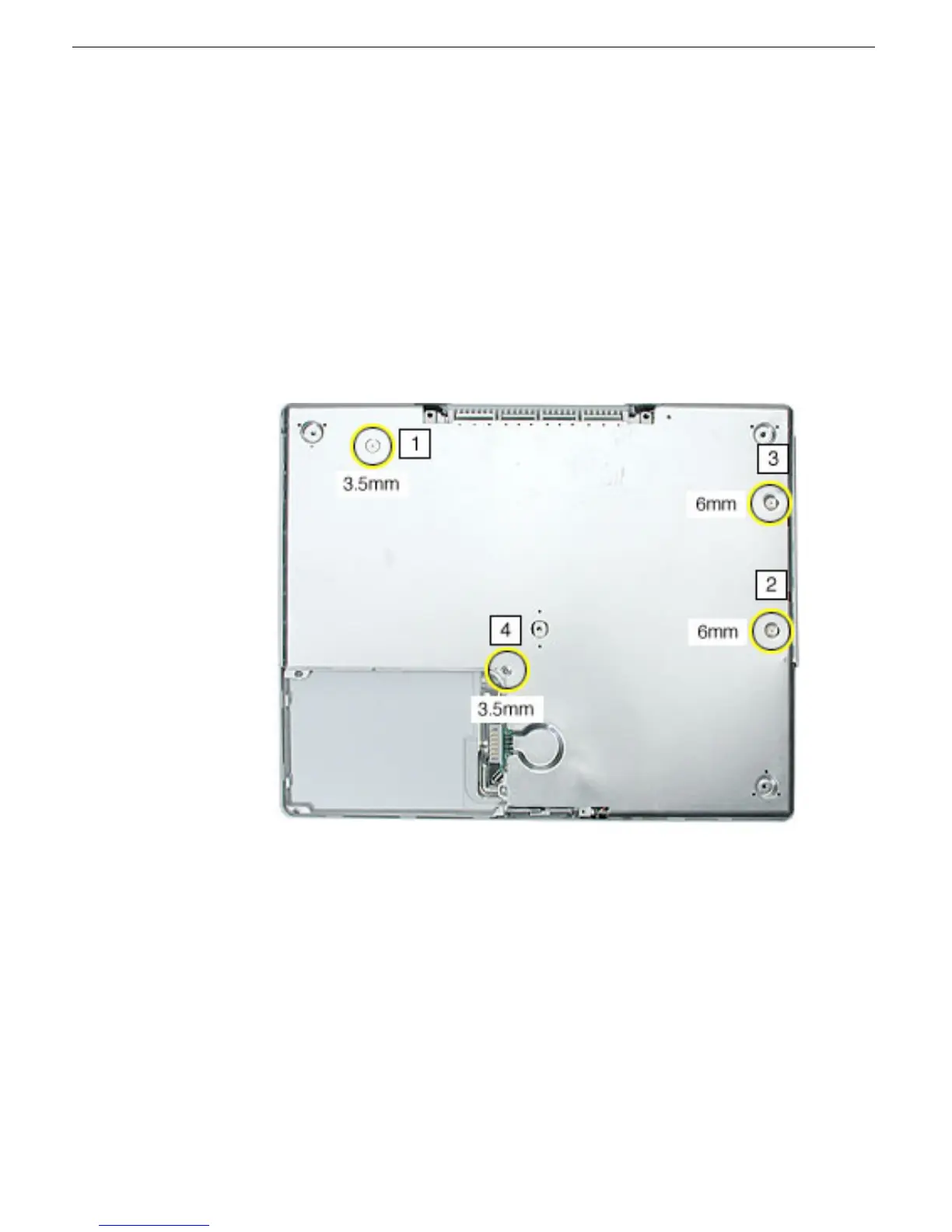 1. With the computer on a soft cloth, remove the four Phillips screws from the bottom