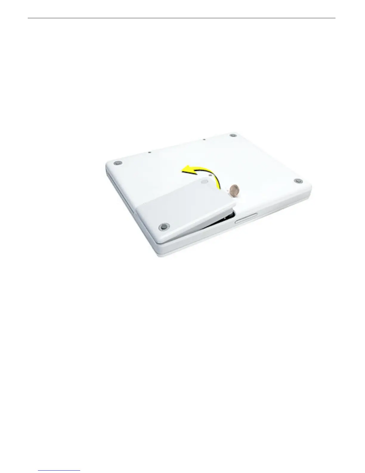 Use a coin to turn the battery latch 1/4 turn clockwise to unlock the battery. Gently