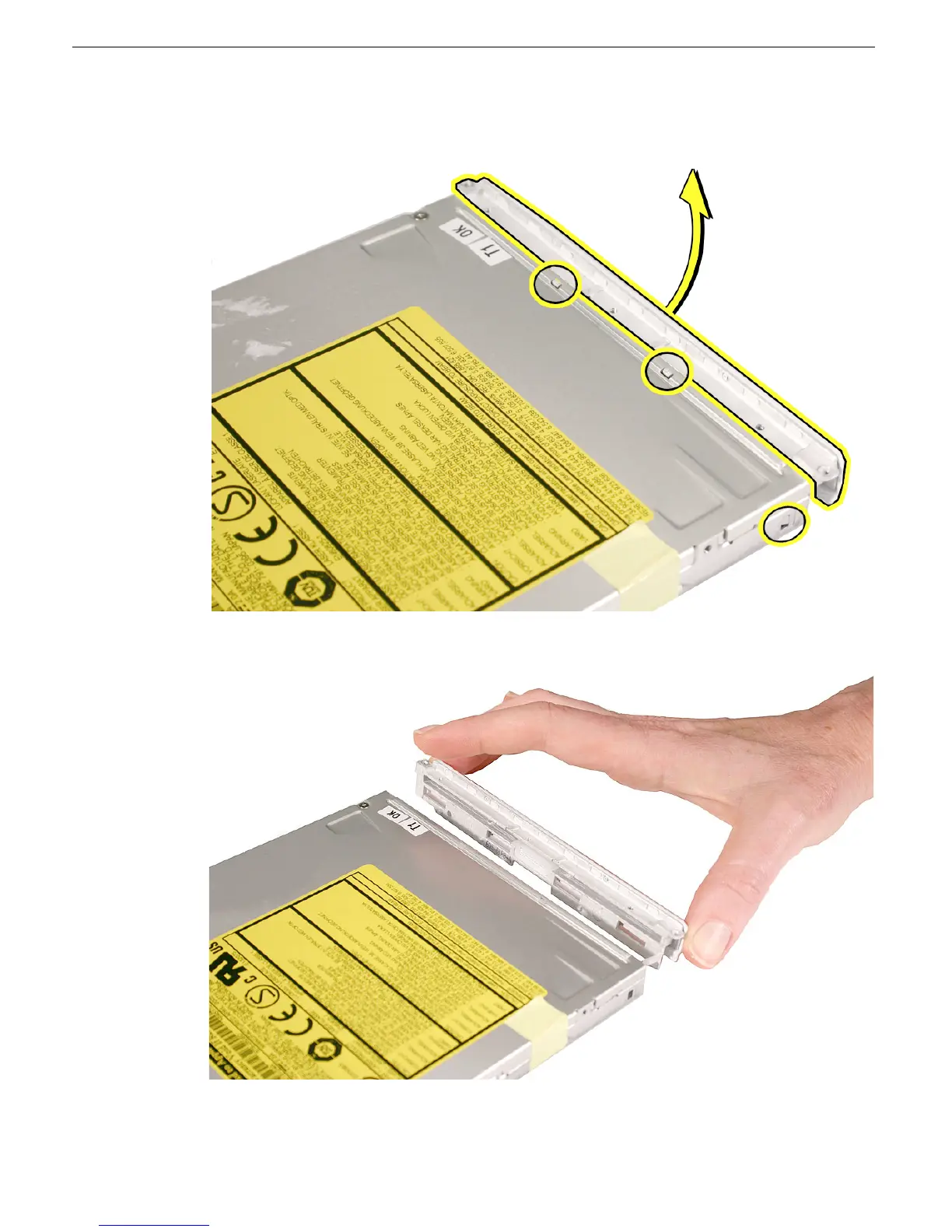 11. With the pointed end of a black stick, press lightly on the three tabs, and tilt the bezel