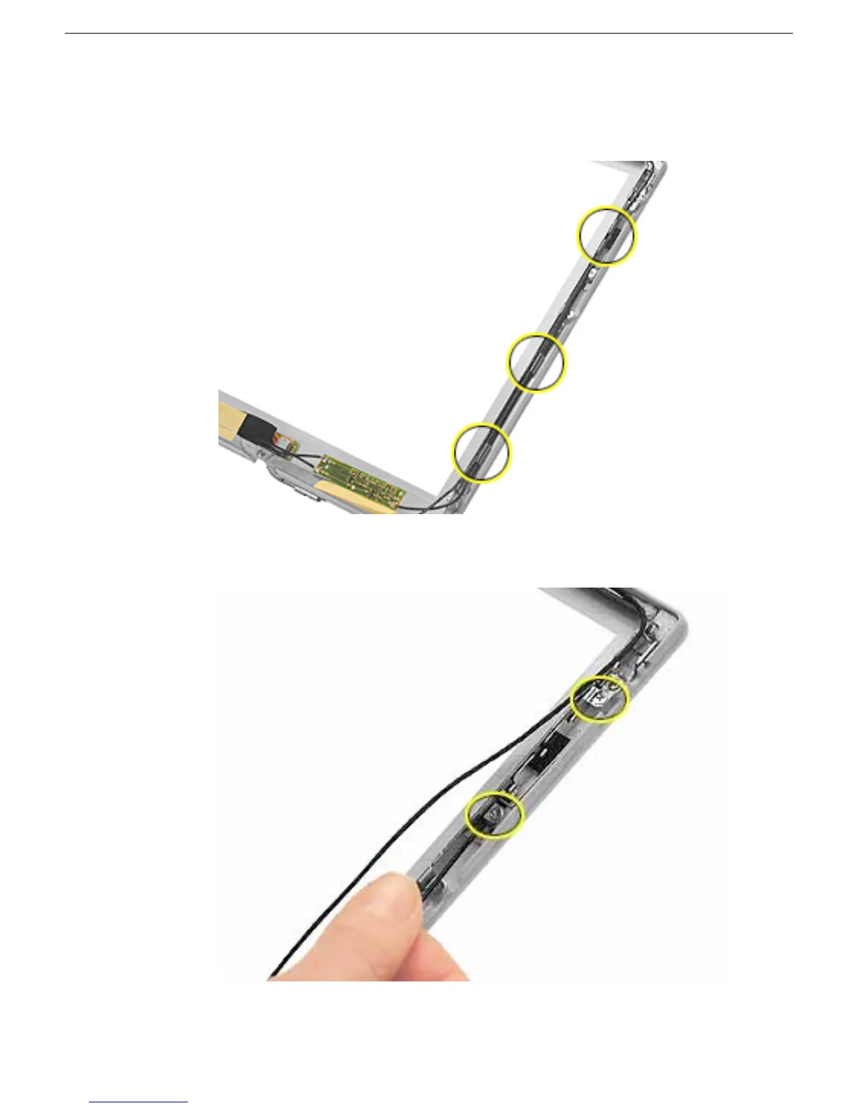6. With the antenna board loosened, note the cable routing on each side of the bezel. On