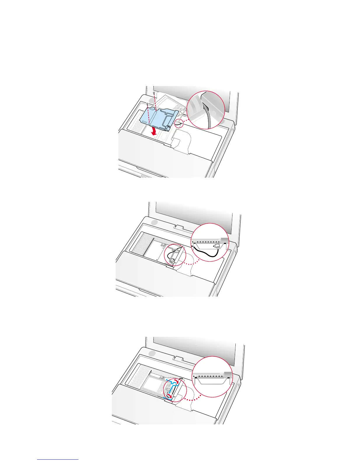 7. If you do not have an AirPort Card, flip down the wire holder over the AirPort Card antenna cable and secure it by inserting