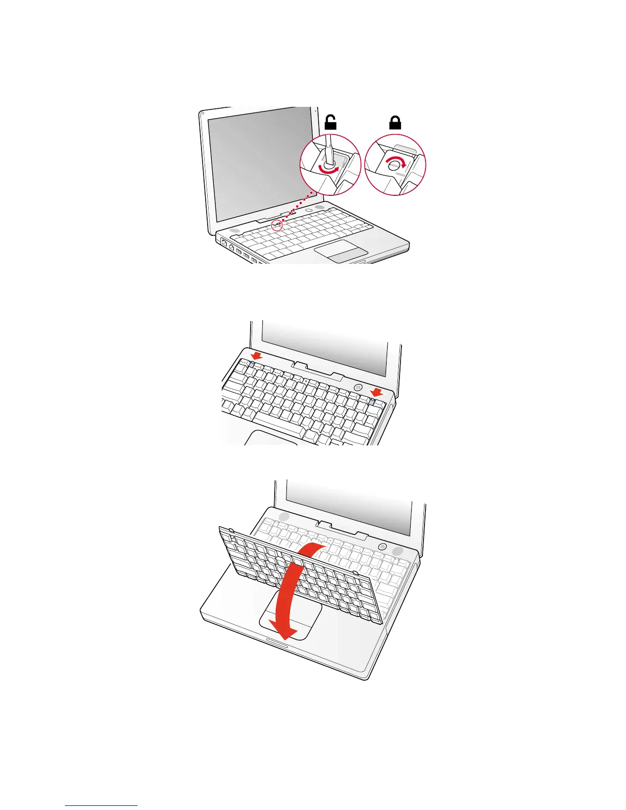 then lift the top portion of the keyboard up slightly, and toward the display.