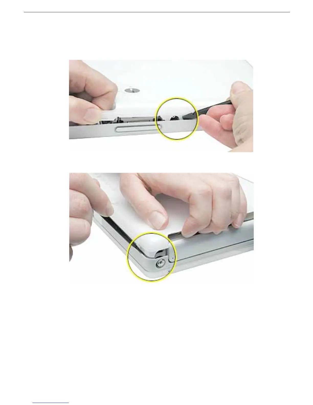 from the computer. Use just the tip of the black stick to pry up the bottom case.