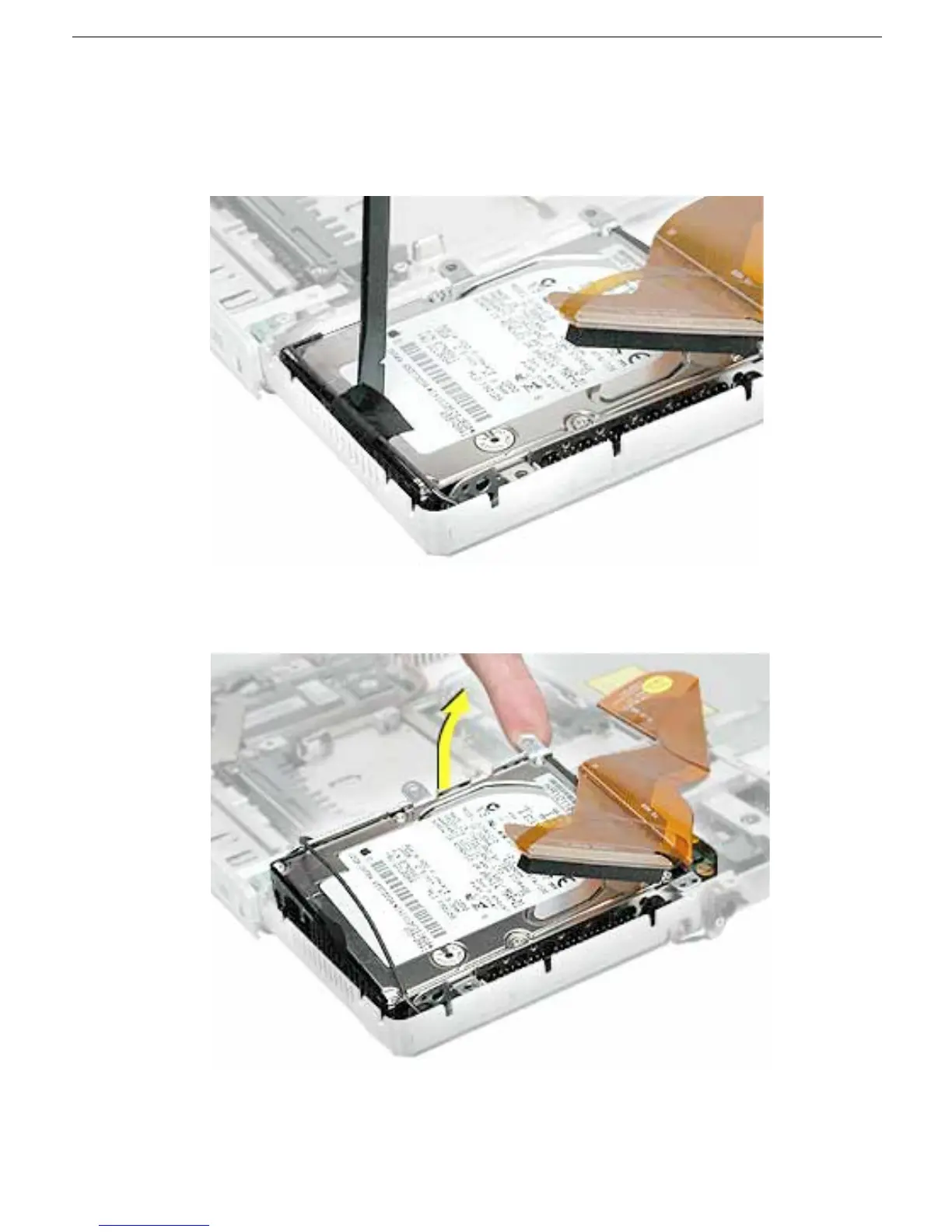 5. From the corner bracket, tilt up the hard drive, and slide it out from under the