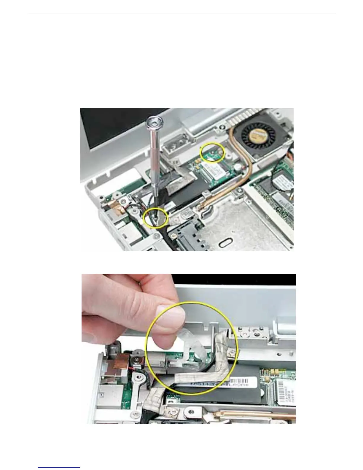 Note the routing of the LVDS cable that is taped to the plastic modem sleeve.
