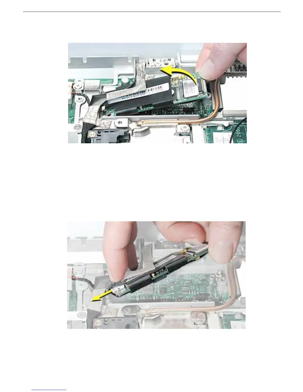 4. Tilt up the end of the modem board to disconnect it from the logic board.