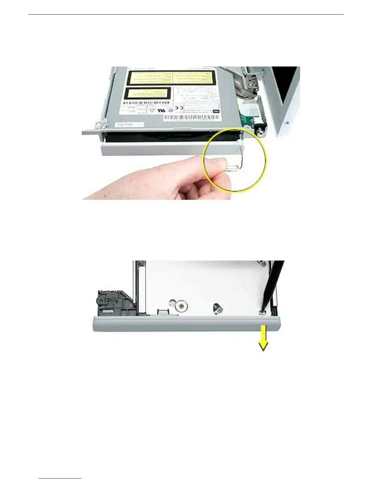 3. On the underside of the drive, notice the tabs near each end of the drive bezel.