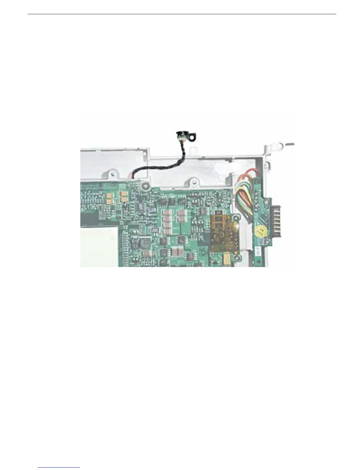 1. With the computer on a soft cloth, note the location of the sleep light board connected