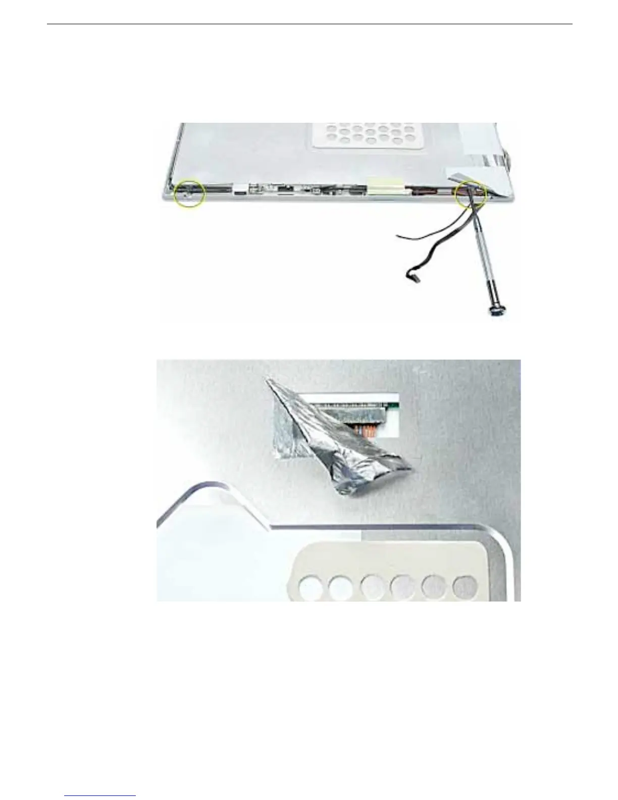 7. Peel up the foil tape that holds the LCD cable to the LCD shield.