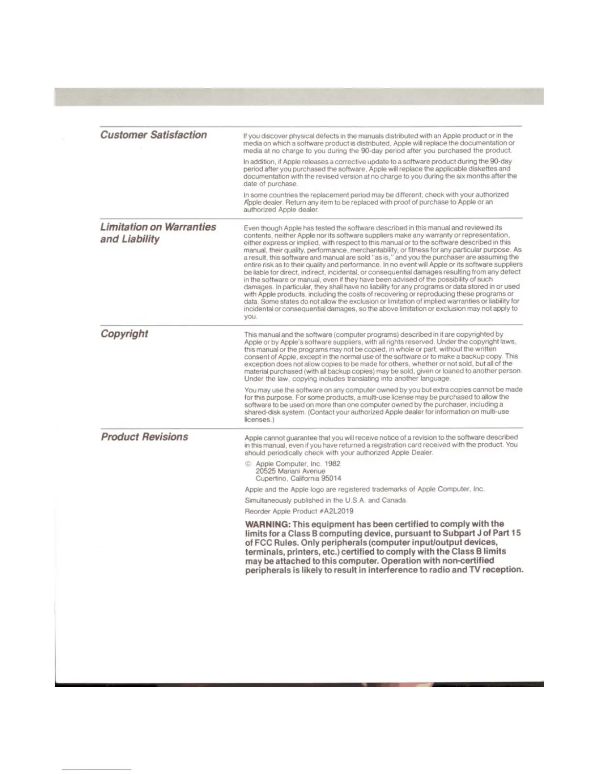 Apple II - Limited Warranty on Media and Replacement; All Implied Warranties on the Media and Manuals; Warning