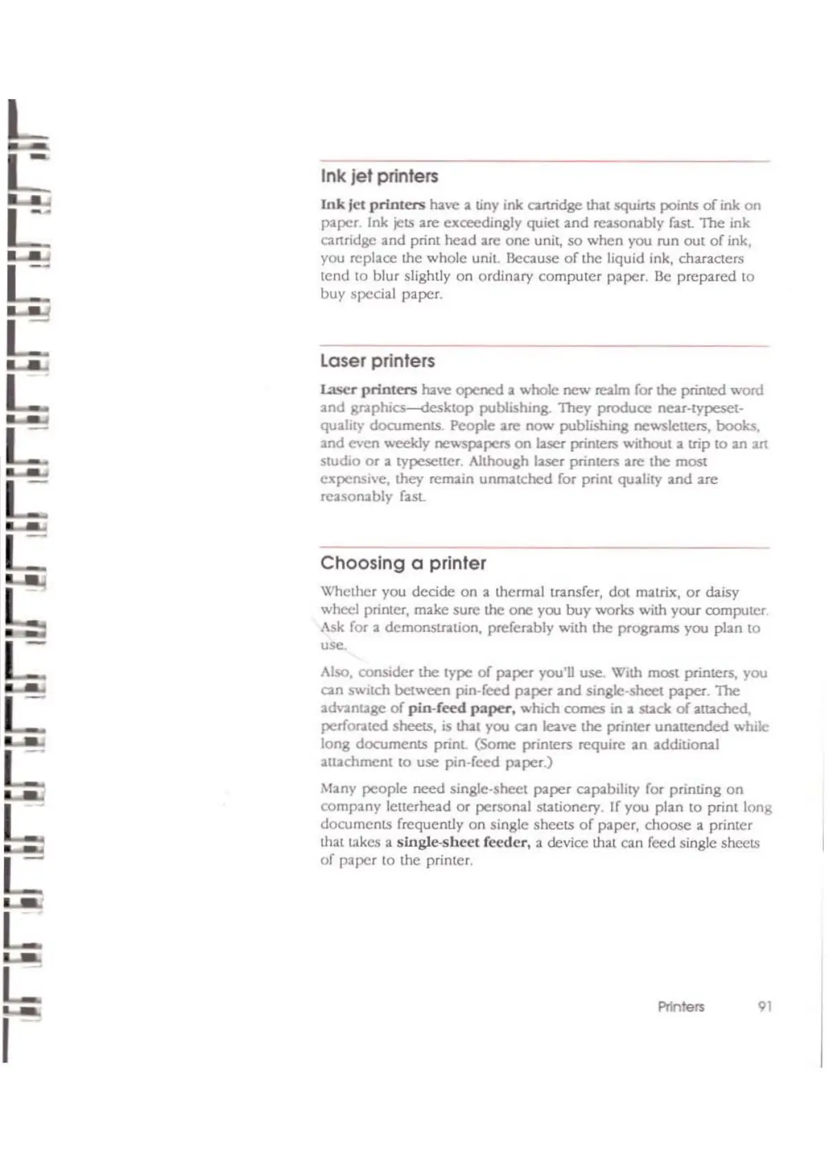 perforated sheets, is that you can leave the printer unattended while
