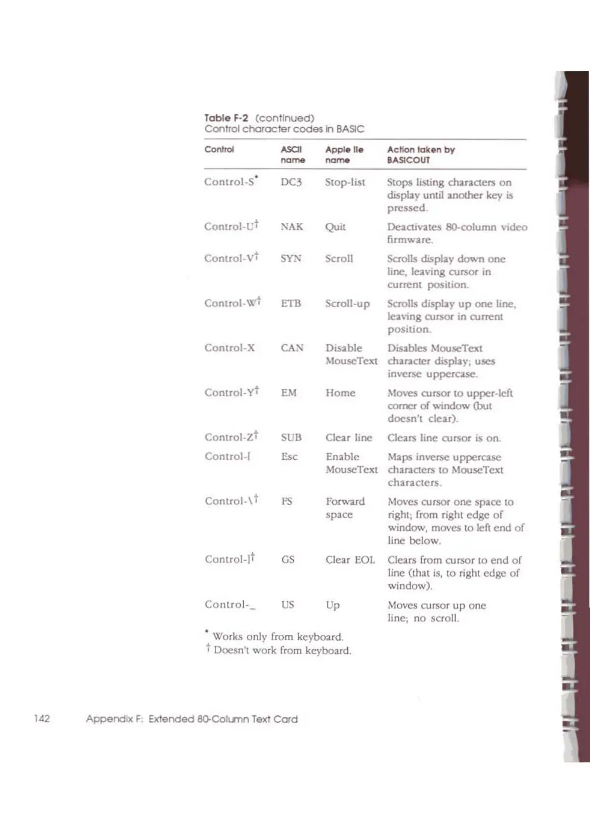 t Doesn't work from keyboard.
