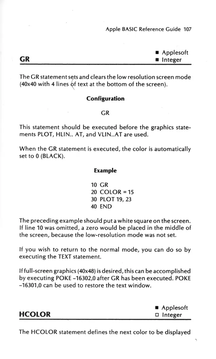 Apple IIe - Graphics Commands: GR, PLOT, HGR, HPLOT