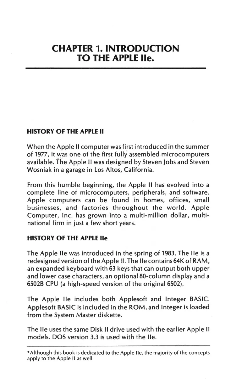 Apple IIe - Introduction to the Apple IIe; History and System Overview