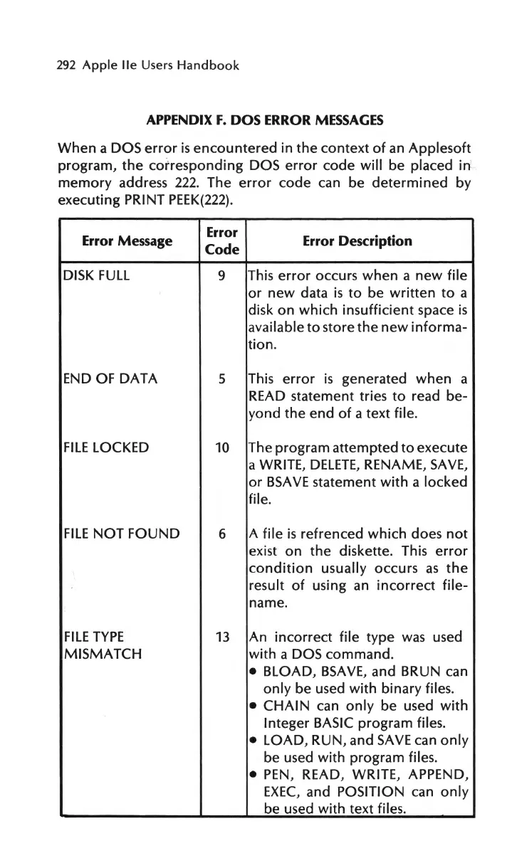 Apple IIe - Appendix F. DOS Error Messages