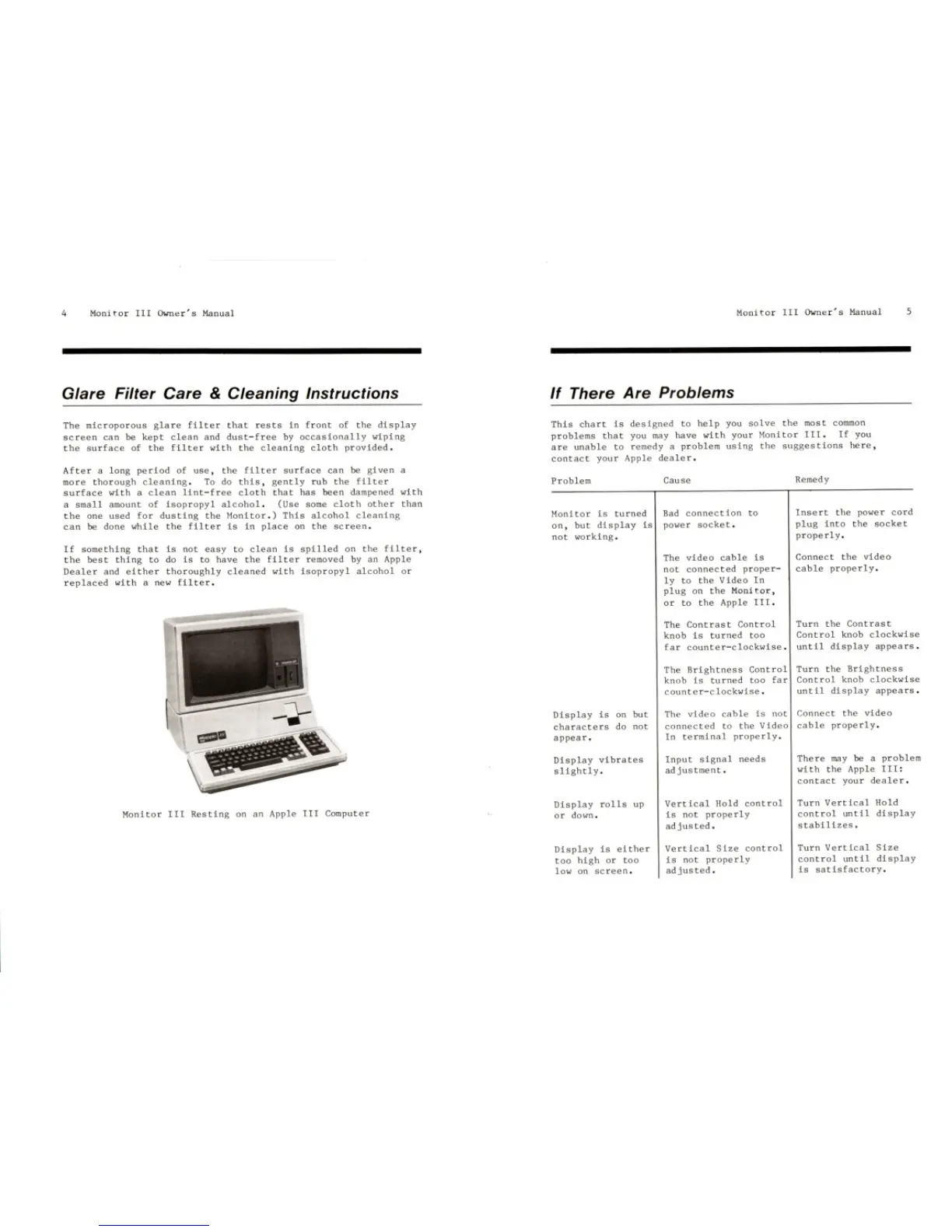 Apple III - Glare Filter Care and Cleaning Instructions; Glare Filter Maintenance; Troubleshooting; Common Troubleshooting Guide