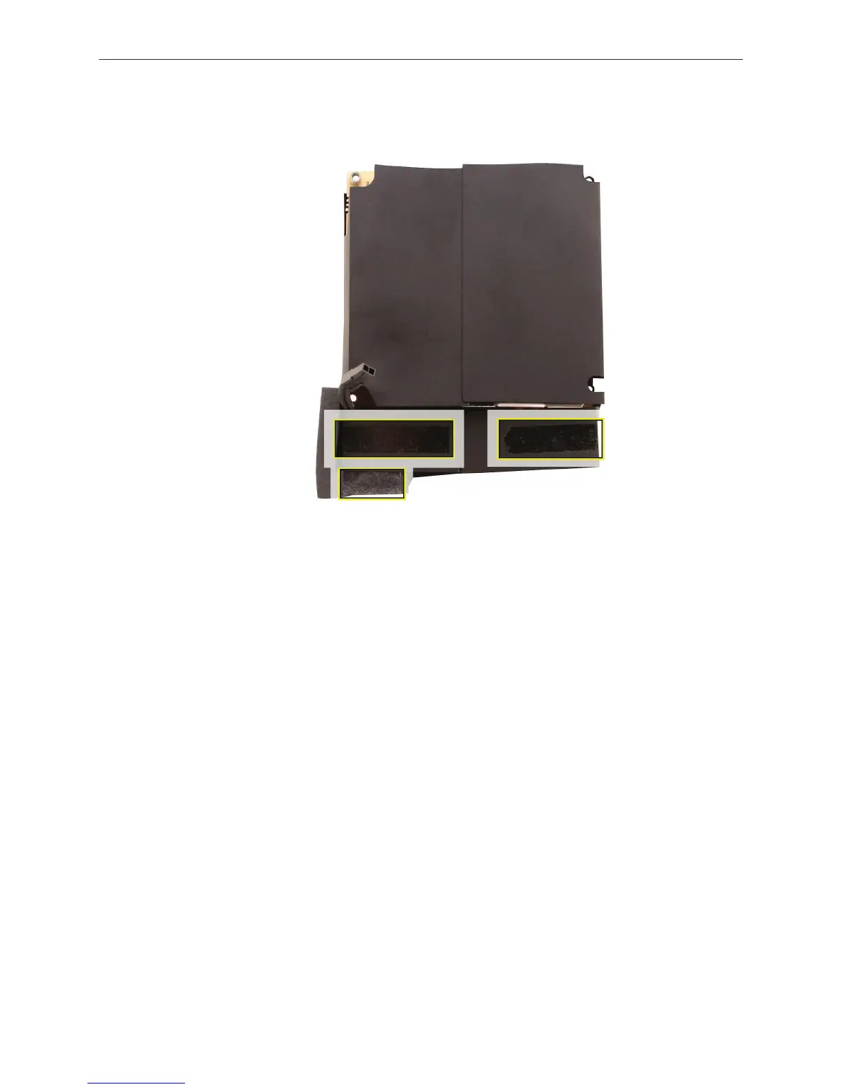On the ip side of the power supply, note the adhesive areas that stick to the frame and